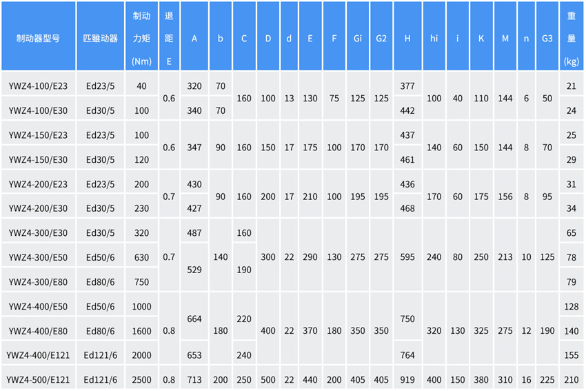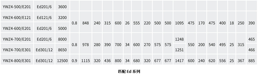注:YWZ4系列的制動器匹配Ed推動器,替代原YWZ4B系列;